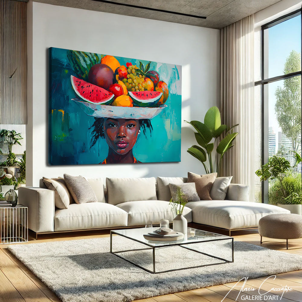 Our living room canvas print imposes its presence with dimensions that radically transform the perception of your living space. Its exceptional scale creates an immersive visual impact that completely redefines the decorative ambiance. A piece that transforms your living room into a true contemporary gallery, perfect for lovers of bold art and large architectural spaces.