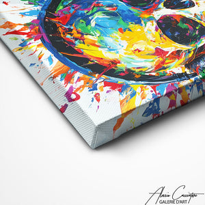 Our large skull frame explodes into multicolored splashes against a pristine background. Gothic chic and modernity combine in this bold work that transforms your home into a sophisticated and magnetically rebellious underground gallery.