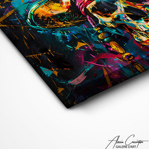With its detailed and striking features, our skull painting fits perfectly into a contemporary or urban decoration. The raw aspect of the work highlights the audacity and originality of this iconic representation.