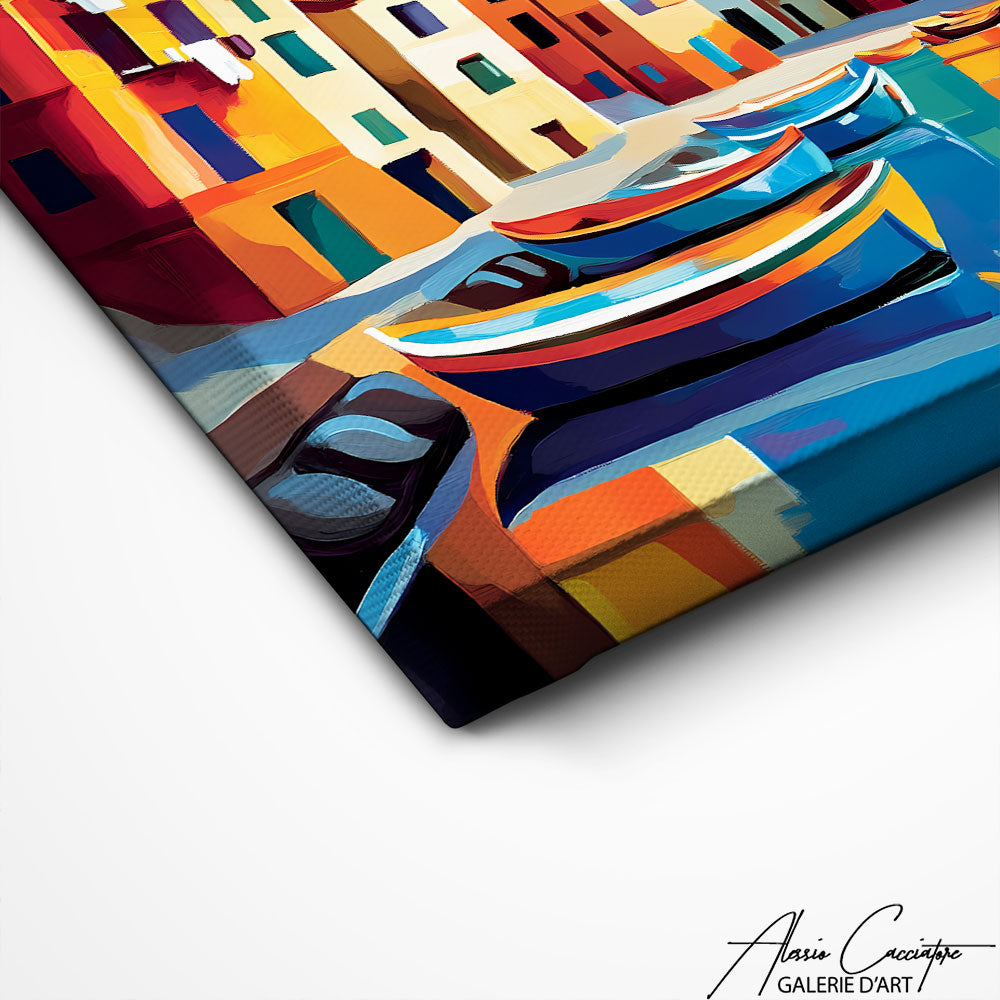 Notre tableau triptyque mer illustre un port méditerranéen baigné de lumière. Idéal pour apporter une ambiance paisible et élégante, il s’intègre parfaitement dans un salon ou une chambre moderne. Une œuvre qui respire vacances et sérénité, un choix parfait pour transformer votre intérieur en évasion méditerranéenne.
