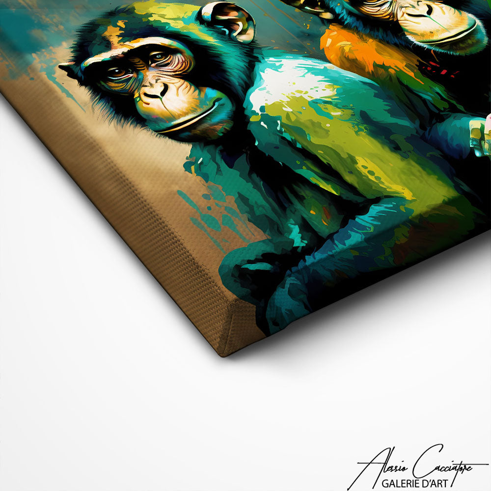 Our 3 monkeys painting, a symbol of curiosity and intelligence, will enhance the atmosphere of your home by effortlessly complementing your interior decoration