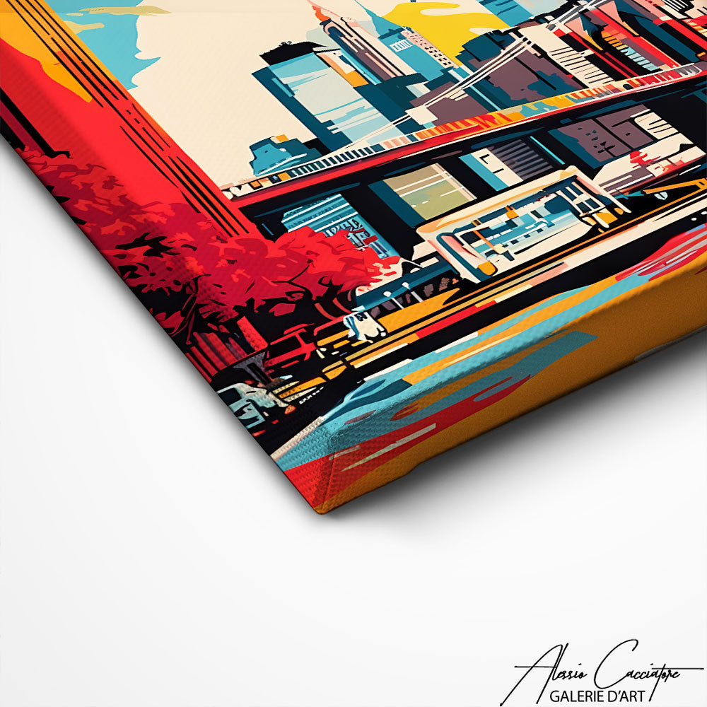 Our Manhattan New York canvas print captures the essence of the famous skyline with its towering skyscrapers and bright lights. Ideal for a modern and urban decoration, it brings a sophisticated and dynamic touch to your interior.