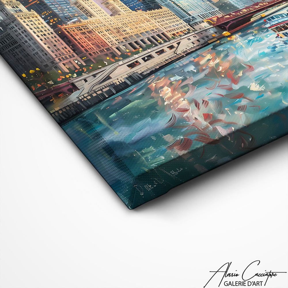 Our Chicago canvas print showcases the city's iconic skyline, capturing its towering skyscrapers and urban vibe. Ideal for modern decor, it brings a dynamic and sophisticated touch to your space.