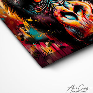 This gorilla painting is imposing in size and captures attention with its majestic and detailed depiction of a gorilla. This work is a bold choice for those who wish to make a strong artistic statement in large spaces such as a living room or entrance hall.