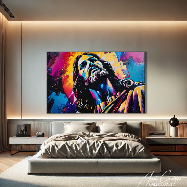 Our painting of Jesus Christ highlights his compassion and divinity through harmonious colors and expressive details. A perfect work to create an atmosphere of contemplation and faith in your home.