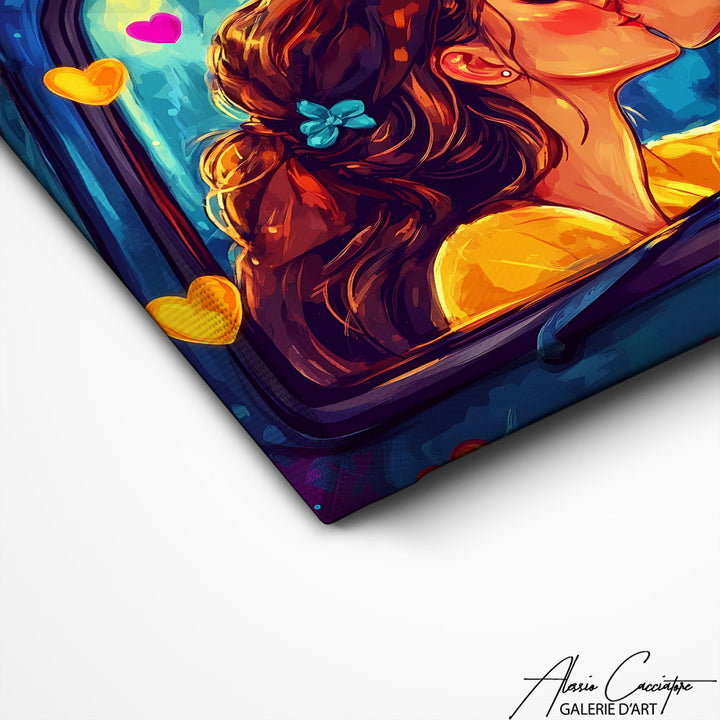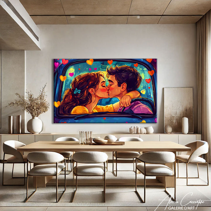 Our abstract painting expresses the intensity of a couple through harmonious colors. Between merging silhouettes and interplay of contrasts, it evokes a timeless and universal love. Ideal for a modern interior, it infuses your decor with an artistic and poetic touch.