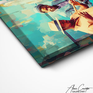 This abstract musician painting combines flowing shapes and bold colours to represent the passion and energy of music. Perfect for a modern interior, it offers a unique and contemporary interpretation of musical art.