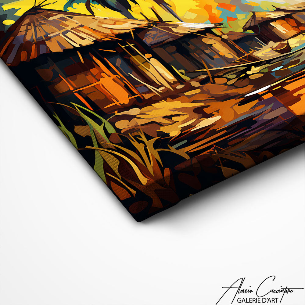 This work presents an African landscape, where the majesty of nature unfolds under a vast and bright sky. A celebration of the African land, this painting invites you to travel and reflect on the preserved beauty of the continent.