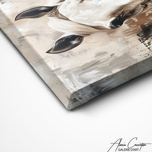 The purity and elegance of this animal are conveyed in this painting of the white horse, offering a touch of serenity and refinement to any space desiring a sober and powerful elegance.