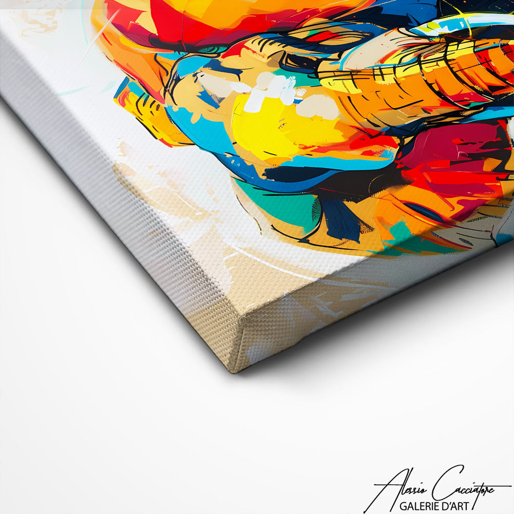 Immerse yourself in the world of modern art with our colorful elephant painting. This blend of color and artistic expression creates a unique piece that fuses the power of the elephant with a vibrant, dynamic aesthetic. Perfect for a modern interior, it injects energy and sophistication into any room. A must-have piece for those seeking contemporary and expressive decor.