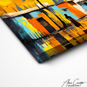 With careful attention to architectural and environmental details, this painting highlights typical African houses. This painting evokes the warmth of welcome and the richness of traditions, adding a note of exoticism and authenticity to any collection.