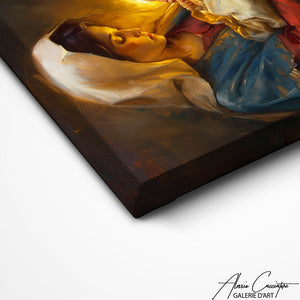 Our Mary Jesus painting illustrates the tender and sacred relationship between the Virgin Mary and the baby Jesus, in a style that inspires piety and devotion. Perfect for a place of worship or to enrich a home of spirituality.