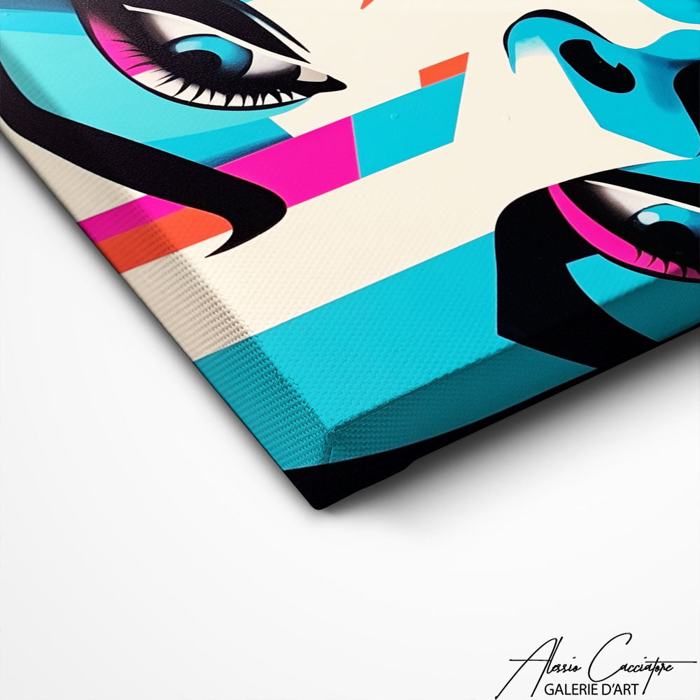 Vibrant and bold, this painting of a pop art face is a tribute to contemporary culture and artistic expression. Its bright colors and bold patterns capture the essence of the pop art movement, making each face not only a work of art but also a symbol of modernity and boldness.