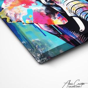 The artist's carefully crafted details make this elephant head painting unique thanks to his mastery of nuances and color variations.