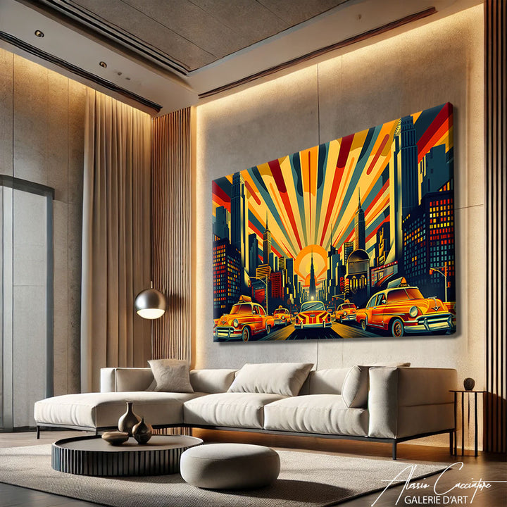 Immerse yourself in the glamorous atmosphere of the 1920s with our Art Deco New York City print. Its soaring skyscrapers, elegant geometric lines, and refined contrasts capture the essence of the Art Deco movement, enhancing the city that never sleeps. Perfect for a living room or office, this print combines modernity and nostalgia, bringing a sophisticated, architectural touch to your home decor.