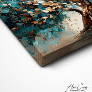 Our tree of life painting illuminates your decor with golden leaves! This precious piece brings luxury and refinement to your home. The golden glow symbolizes prosperity and growth in your living space. Decorative art that transforms your walls into a treasure!