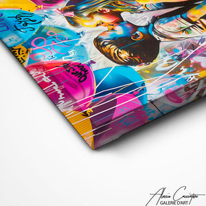 Add a touch of provocation and reflection to your decor with this street art painting. Ideal for an interior that likes to spark conversation.