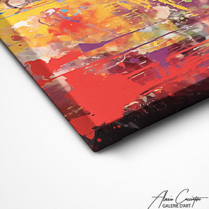 This colorful square painting energizes your space with its vibrant hues and geometric patterns. Perfect for adding a modern and lively touch to any room, it brightens up your interior with style.