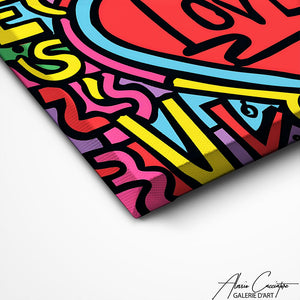 This adult bedroom painting symbolizes love and connection, with harmonious patterns and colors. Perfect for bringing a warm and romantic touch to your night space, it inspires calm and tenderness.
