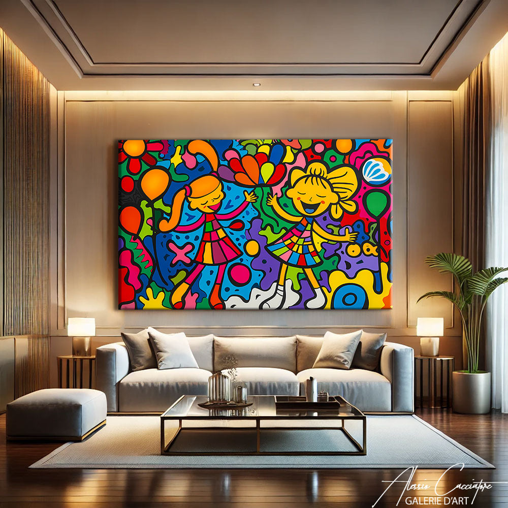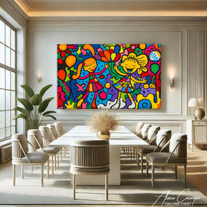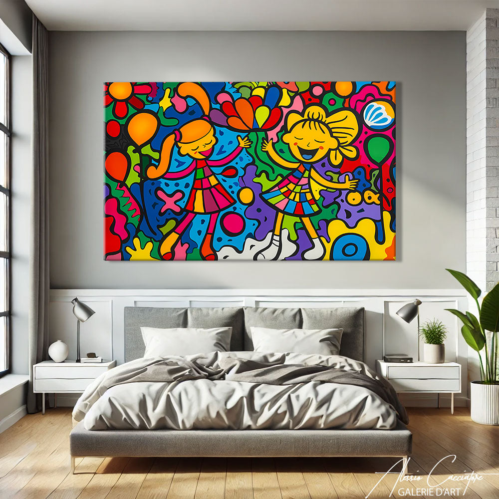 This painting for a girl's bedroom, with its pastel colors and soft illustrations, adds a touch of magic and enchantment to the space. Ideal for creating a world of dreams and fantasy.