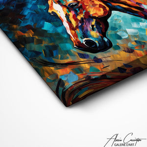 The artist's attention to detail has created this striking visual effect in our modern horse painting. This piece will add a touch of elegance to your wall decor.