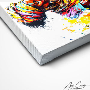 Our canvases are printed using a special UV-resistant ink. This ink protects colors over the years to maintain the contrast of the paint.