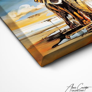 If you are looking to enhance your interior, the gallery offers you this elephant painting in the spirit of Dali. Its vibrant colors will attract the eye and add a touch of intrigue to any room.