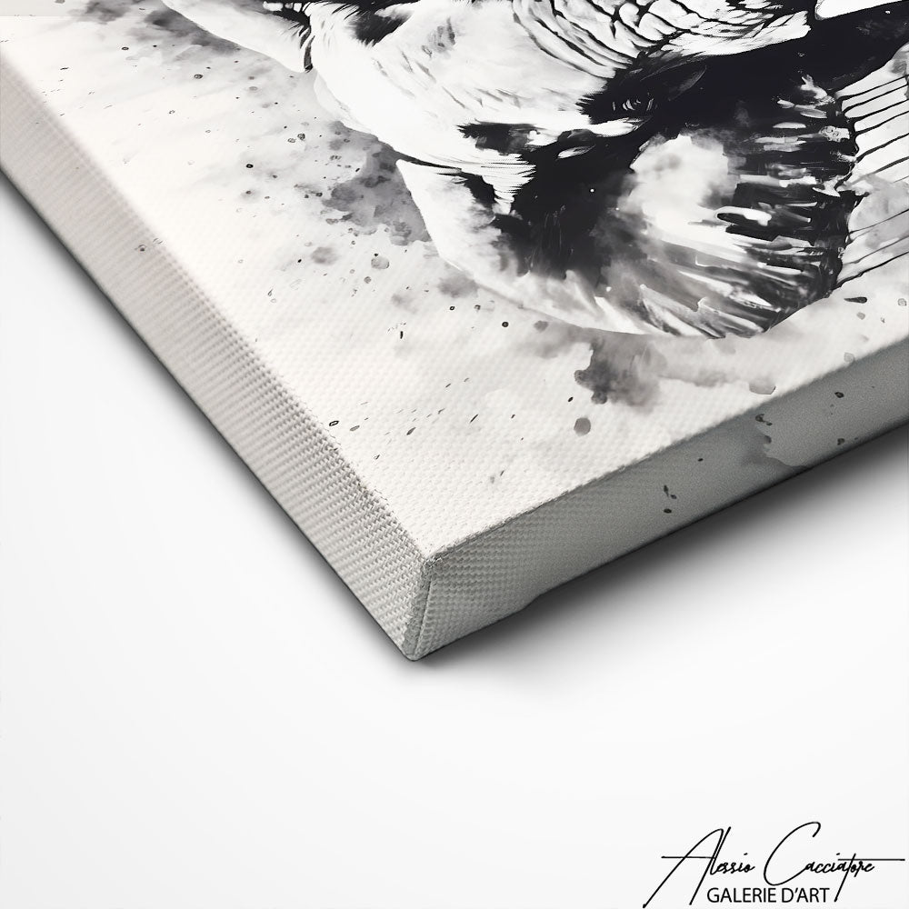 The depth of expression of this black and white elephant, brilliantly captured by the artist, conveys breathtaking power and emotion.