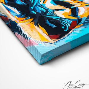 This artwork offers a touch of humor and originality, depicting a relaxed gorilla smoking a cigar. This painting boldly combines animal art with a hint of anthropomorphism, perfect for energizing and personalizing your space.