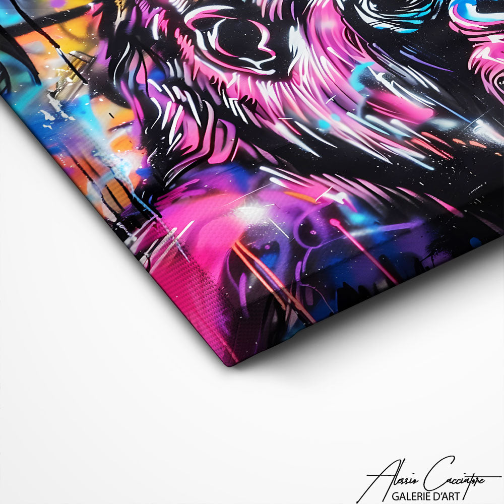 Our multi-colored gorilla painting is a colorful interpretation that adds a touch of whimsy and liveliness to the imposing image of the gorilla. Perfect for brightening up a living space and introducing a touch of color.