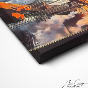 Our chic industrial print depicts a metallurgical factory in full operation, featuring sparks, imposing structures, and a raw atmosphere enhanced by an artistic touch. Shades of gray, steel, and light create a balance between strength and elegance. Ideal for a loft or contemporary interior, this print brings power, movement, and industrial refinement to your decor.