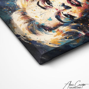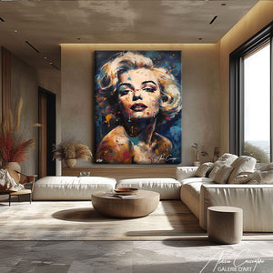 Our colorful Marilyn Monroe painting brightens any space with its vibrant hues and decidedly pop art style. The actress is showcased in a bold composition that blends retro elegance with visual modernity. Perfect for a trendy decor full of character, this painting pays homage to the icon with vibrancy and personality.