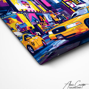 This New York taxi painting features Manhattan's famous yellow taxis in a captivating urban setting. With its bright colors and artistic style, it brings energy and modernity to your decor