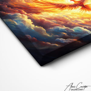 Inspired by mythology and legends, our firebird painting evokes rebirth and power through flamboyant colors and a spectacular design. Perfect for a bold and energizing decor, this painting instills a mystical and captivating atmosphere. With its fiery hues and striking contrasts, it becomes a true centerpiece in a modern interior.
