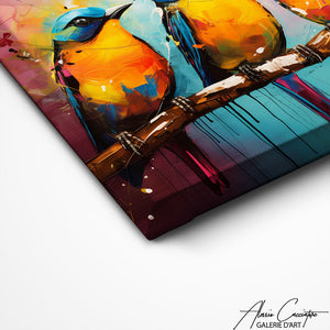With our colorful birds painting, invite the full spectrum of nature into your living space. This piece is a celebration of life, filled with colors that dance before your eyes, perfect for bringing a touch of cheerfulness and freshness to any environment.
