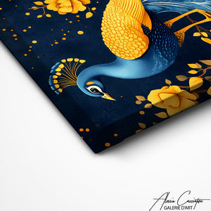 The azure intensity of the plumage unfolds majestically in our striking blue peacock painting. Cobalt, turquoise, and sapphire shades intermingle to recreate the visual magic of this iconic bird. A decorative piece that brings depth and mystery to your space with its captivating color presence.