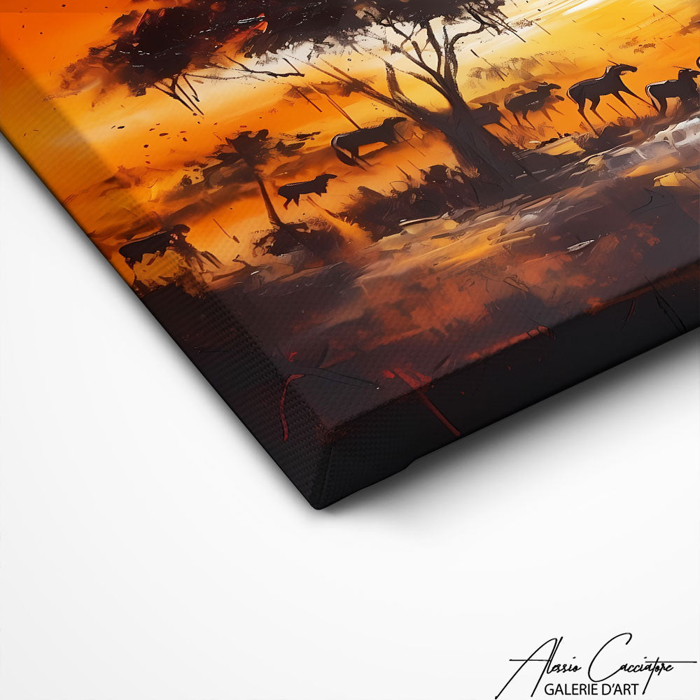 This sublime African landscape painting is a celebration of the beauty of Africa. The exotic hues and intricate details of this painted landscape create a scene that evokes the majesty and diversity of the African continent.