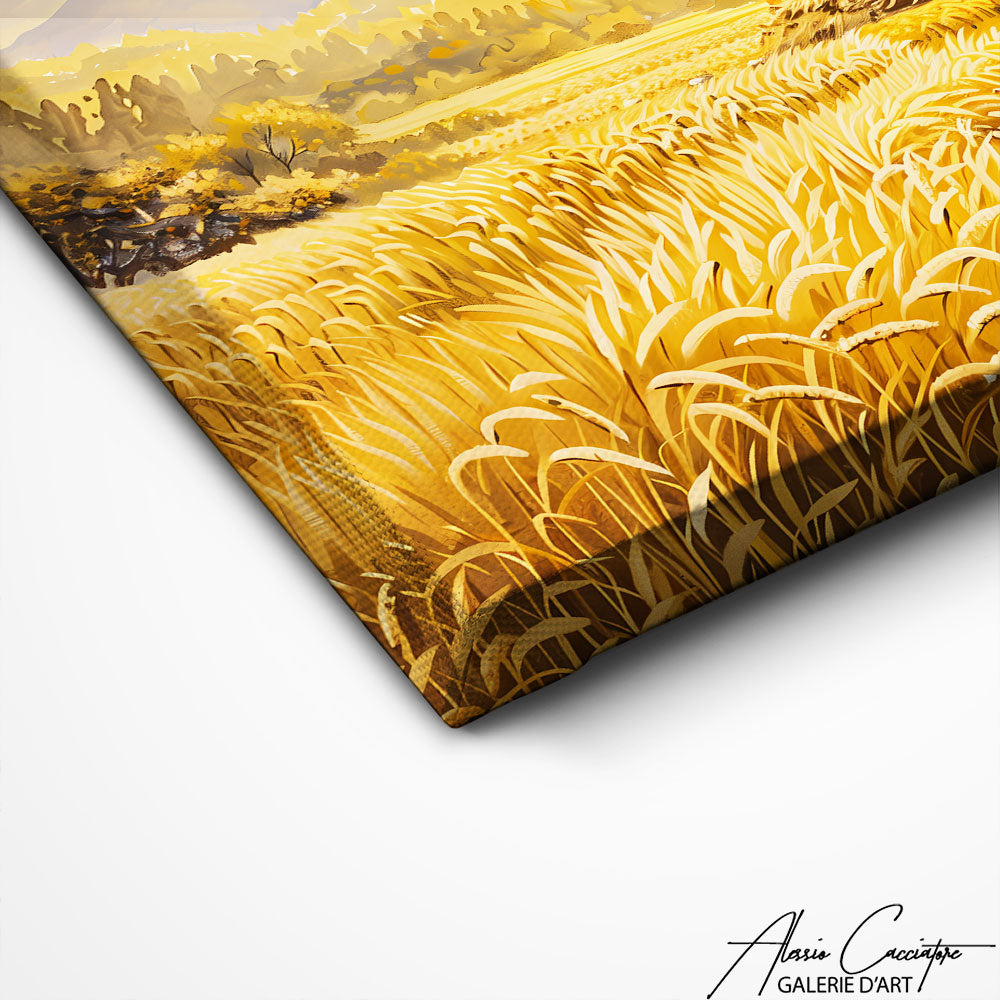 Our countryside landscape painting illustrates fields, hills and picturesque villages with a touch of authenticity. The soft and soothing hues create a warm and natural atmosphere.