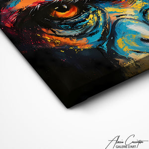This monkey painting combines refined technique and captivating subject matter, delivering a work that celebrates the beauty and complexity of these fascinating creatures through an intense gaze that will add character to your room.