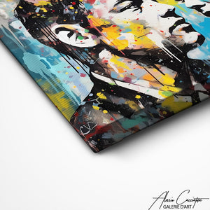 Our abstract street art painting draws its inspiration from the energy and spontaneity of urban art. The undefined shapes and bold colors create a stimulating work of art and invite contemplation.