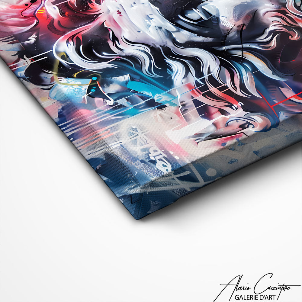 A fusion of mythology and modernity, our street art canvas revisits the iconic figures of Greek gods with a bold urban style. The sculptural face of an ancient deity stands out powerfully, contrasting with the raw and expressive aesthetic of street art. Its powerful design makes it a statement piece that immediately attracts attention and adds character to any space.