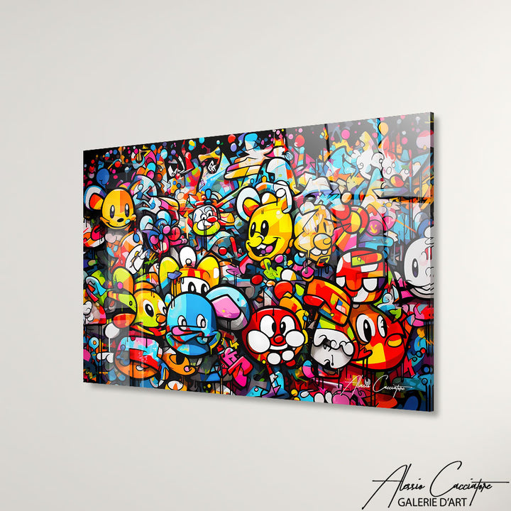 A bold artistic statement, this painting captures the essence of street art. Its imposing dimensions, coupled with a bold use of color and shape, make it a must-have centerpiece for any space.