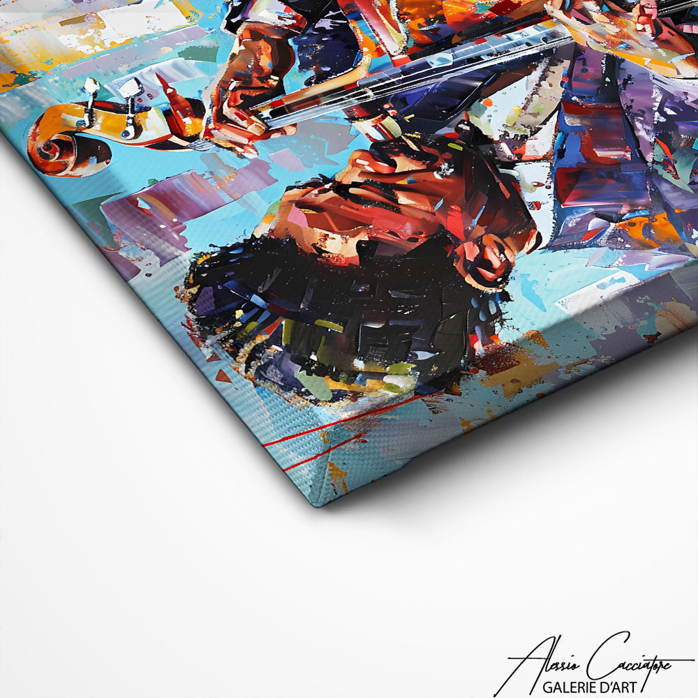 Ideal for lovers of this timeless music, this jazz painting is an invitation to dive into a universe where jazz is much more than a musical genre, it is a true sensory experience, rich in emotions and history.