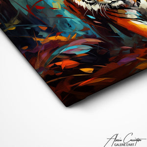 Explore the depths of the jungle with this tiger painting, where lush greenery forms a striking contrast to the silent power of the feline. This wall art is an invitation to escape into an exotic and unexplored world.