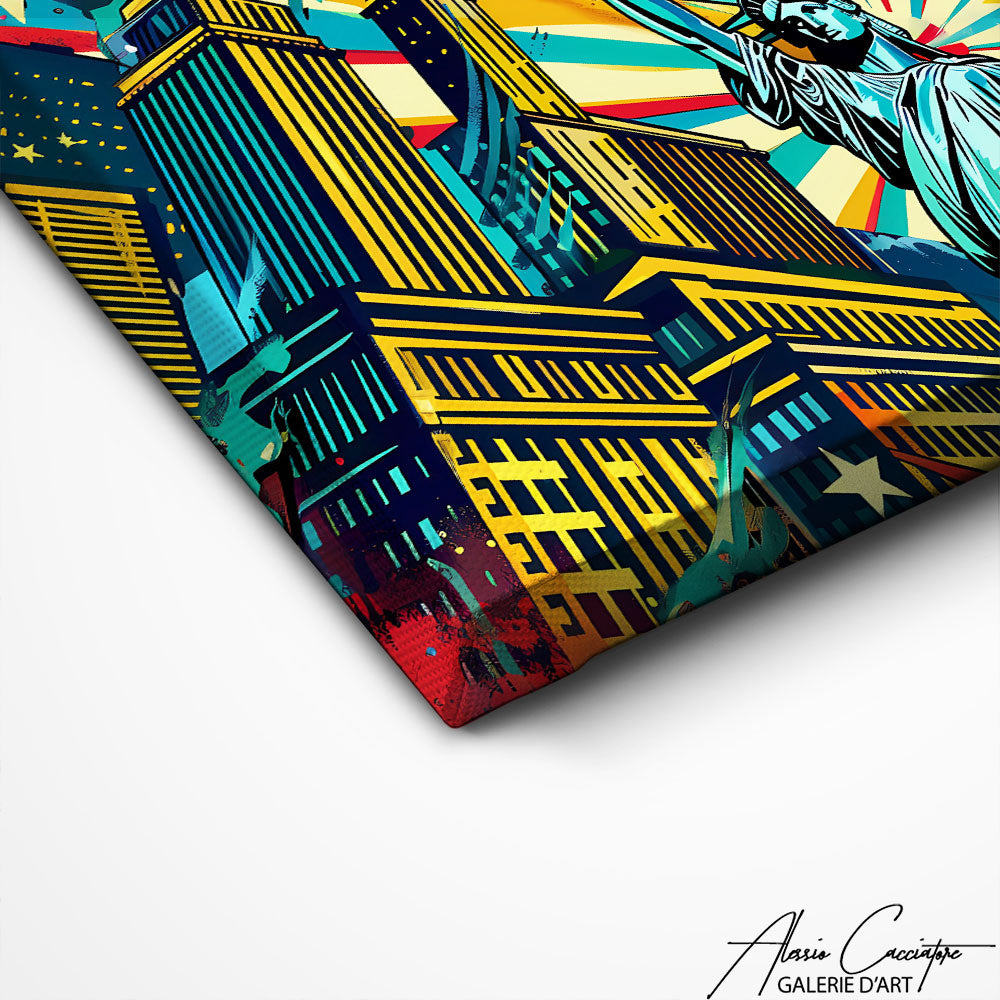 This New York triptych painting immerses you in the energy of the city that never sleeps. Skyscrapers, city lights and famous monuments unfold across three panels, bringing a modern urban atmosphere to your interior.