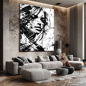 Our Black and White Woman Face Painting captures the beauty of this woman with moving precision. In this play of light and shadow, each line and contrast tells a profound story, offering a work of art full of soul and character.