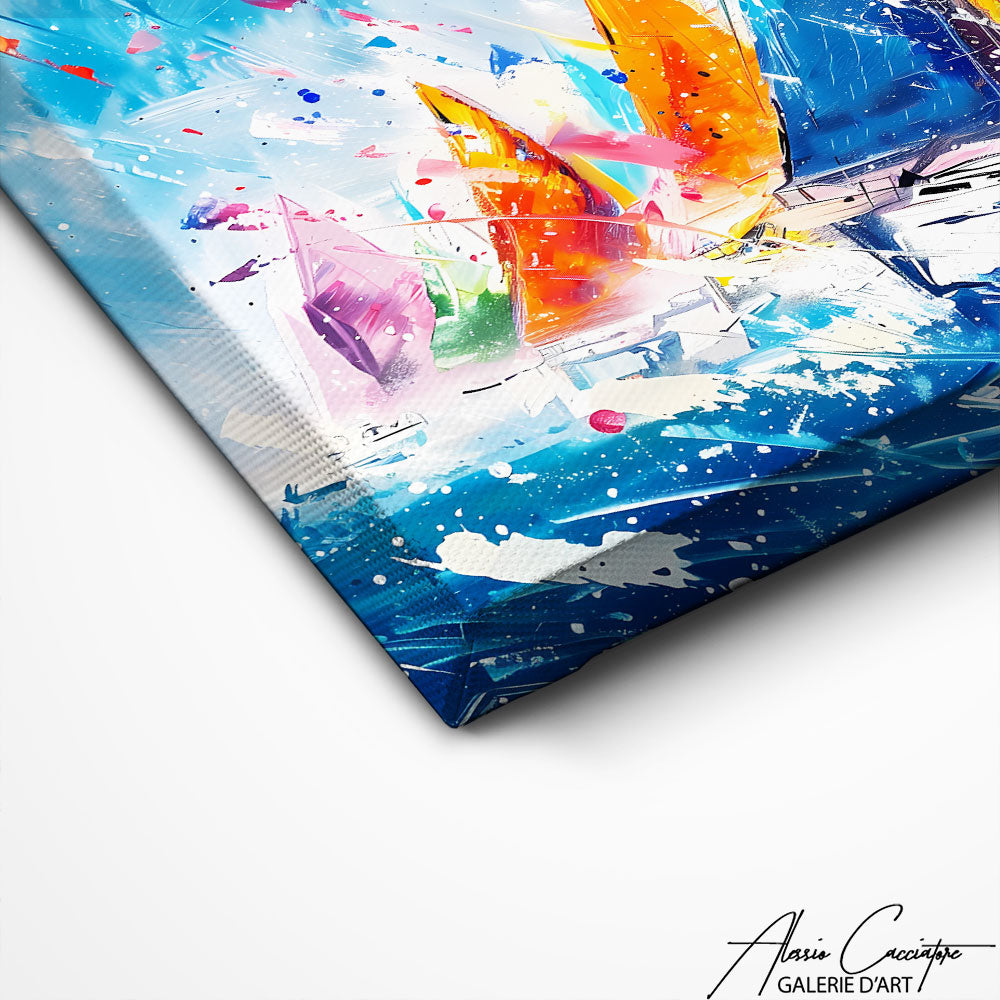 Our modern sailboat painting , with its stylized shapes and bright colors, fits perfectly into a contemporary interior. Perfect for those looking to combine elegance and character in their decoration.