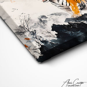 This tiger painting highlights the power and grace of this iconic animal. Ideal for a living room or office, this painting becomes a captivating focal point that evokes the wilderness.