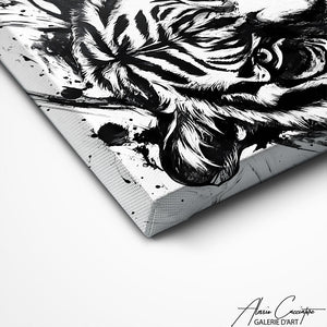 In a black and white composition, our tiger painting embodies the wild power of the king of the jungle. Perfect for bringing a touch of boldness and exoticism to your living room or office.