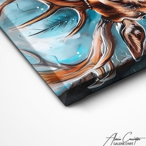 Our deer canvas, made with a palette of natural tones, captures the grace and power of the animal. Perfect for a nature-inspired interior, it brings a feeling of calm and serenity.